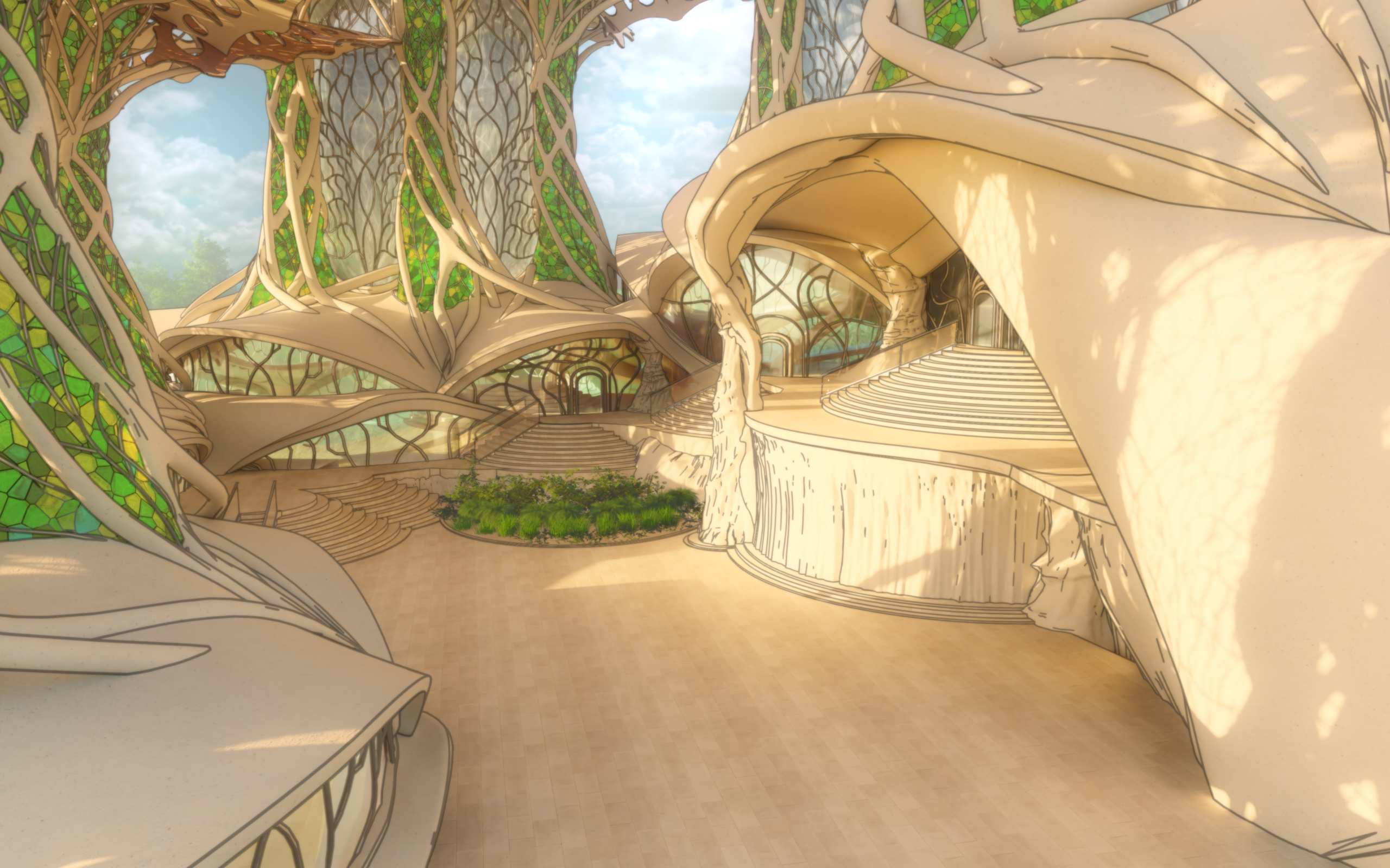 Robert Oshatz, Brett Holverstott, Elijah Evenson and Austin Eddy, Courtyard. Architectural Rendering, November, 2025.