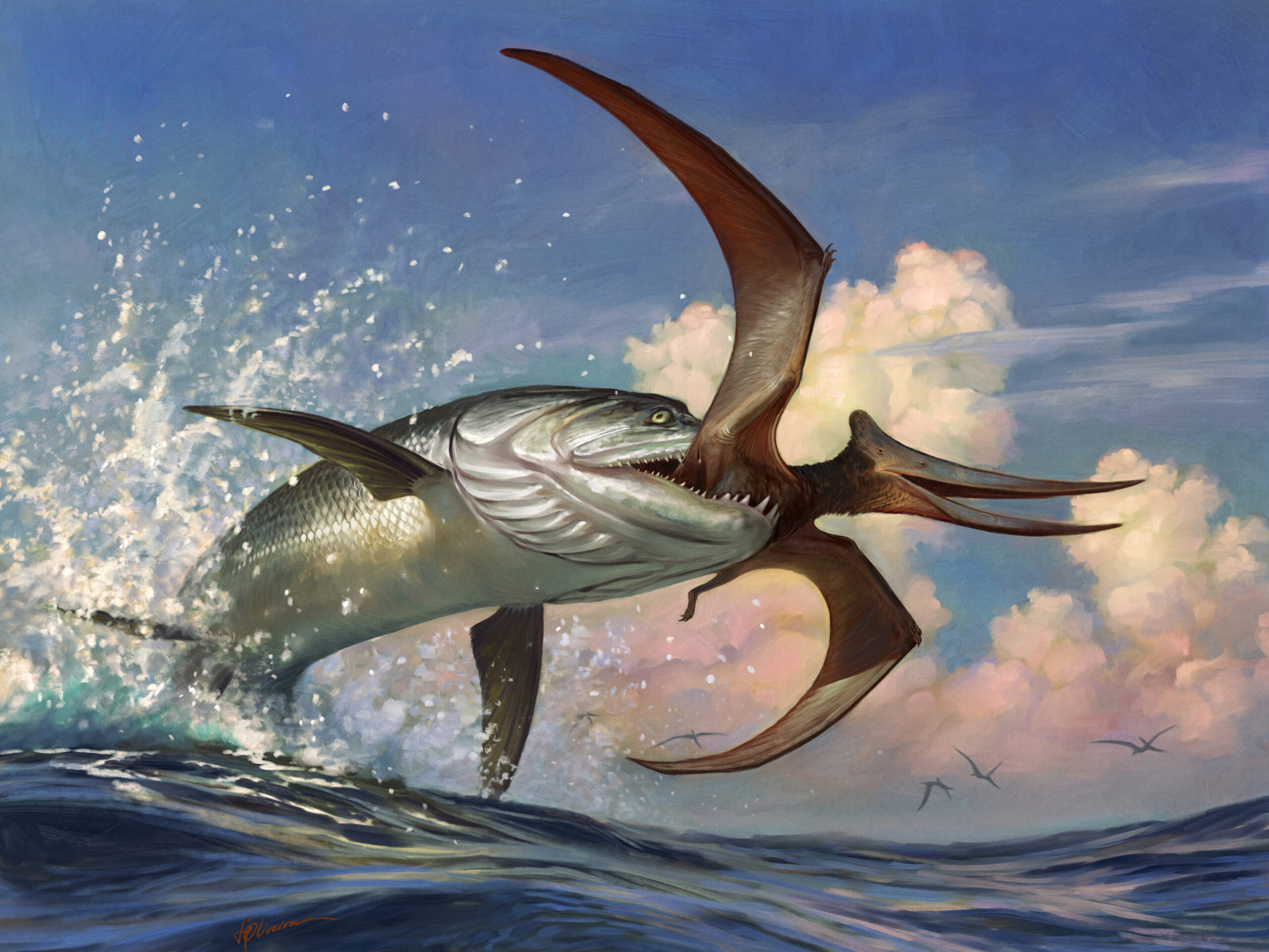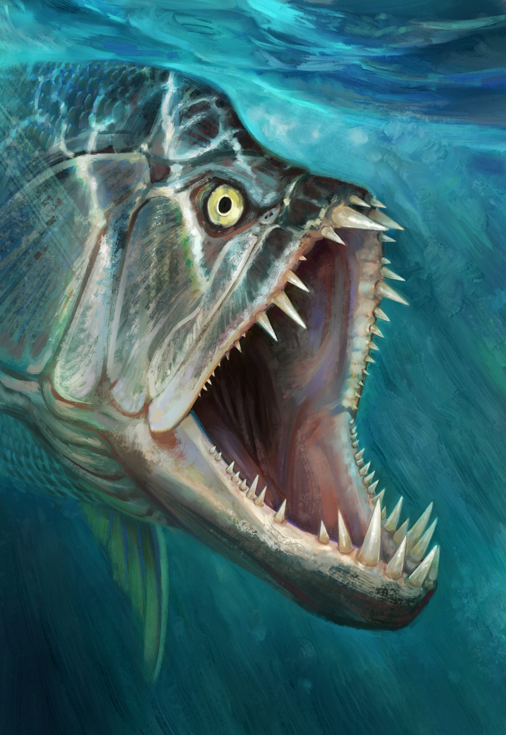Project Cover, Júlia d’Oliveira, Xiphactinus. Digital artwork, April, 2025.
